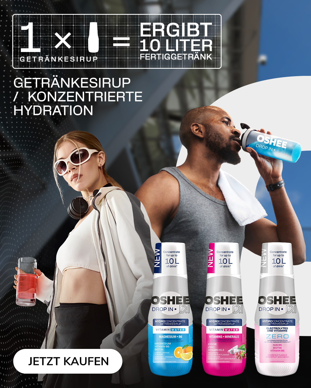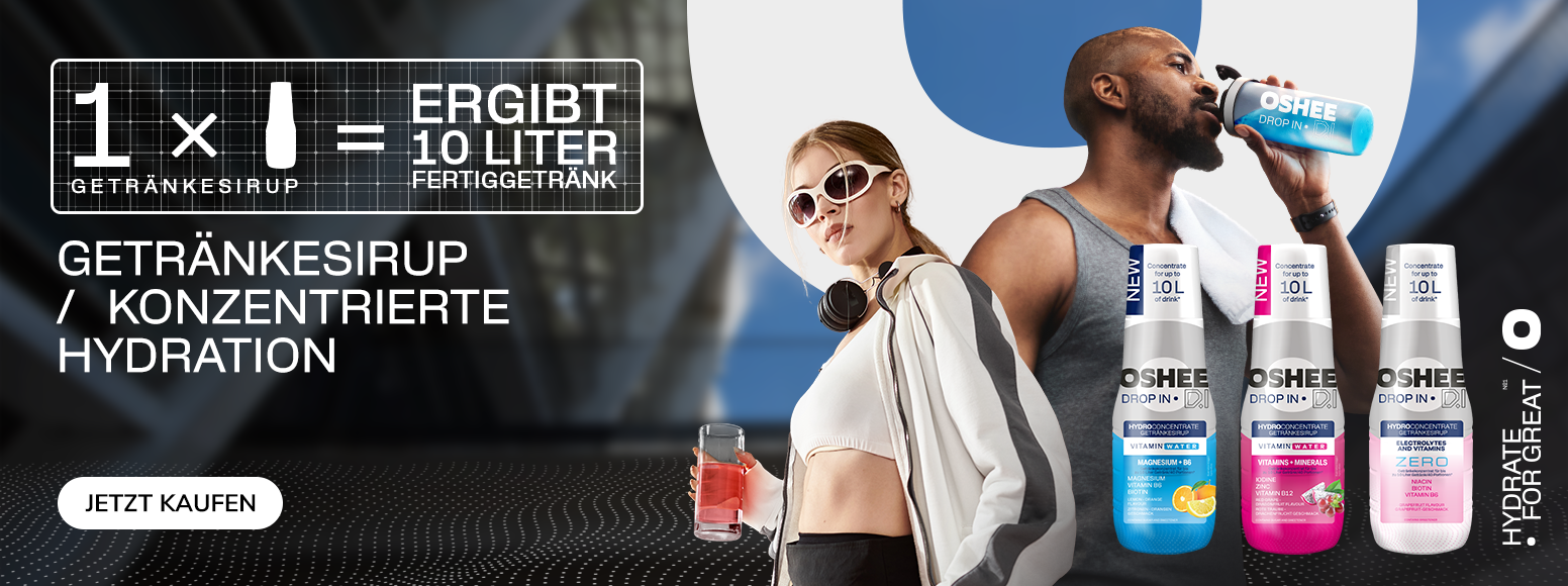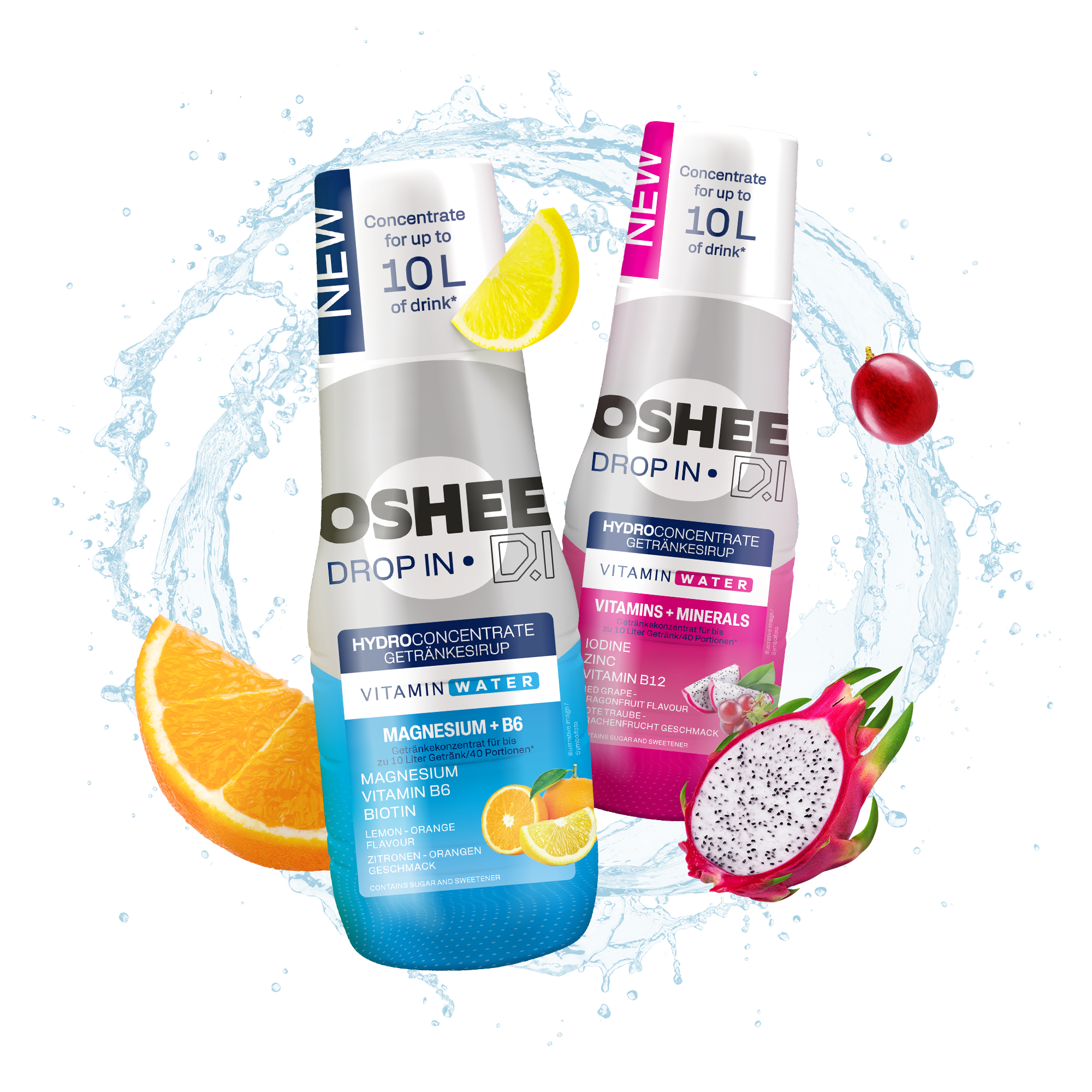 OSHEE DROP IN ist die neue Version bewährter Hydration – basierend auf der Expertise und Erfahrung der Marke OSHEE. Funktionale Getränke, die du kennst, jetzt als Getränkesirupe – einfach in der Anwendung: Einfach die passende Menge in stilles oder sprudelndes Wasser geben. OSHEE DROP IN Produkte enthalten Vitamine, Elektrolyte und Mineralstoffe – sie liefern wertvolle Nährstoffe und unterstützen gleichzeitig die Flüssigkeitszufuhr des Körpers. Ideal zum Trinken zu Hause, bei der Arbeit, beim Training oder unterwegs. Elektrolyt- und Vitamingetränke in OSHEE DROP IN-Konzentratform sind eine ökologische Alternative – wir hydratisieren dein Leben, damit es besser wird!