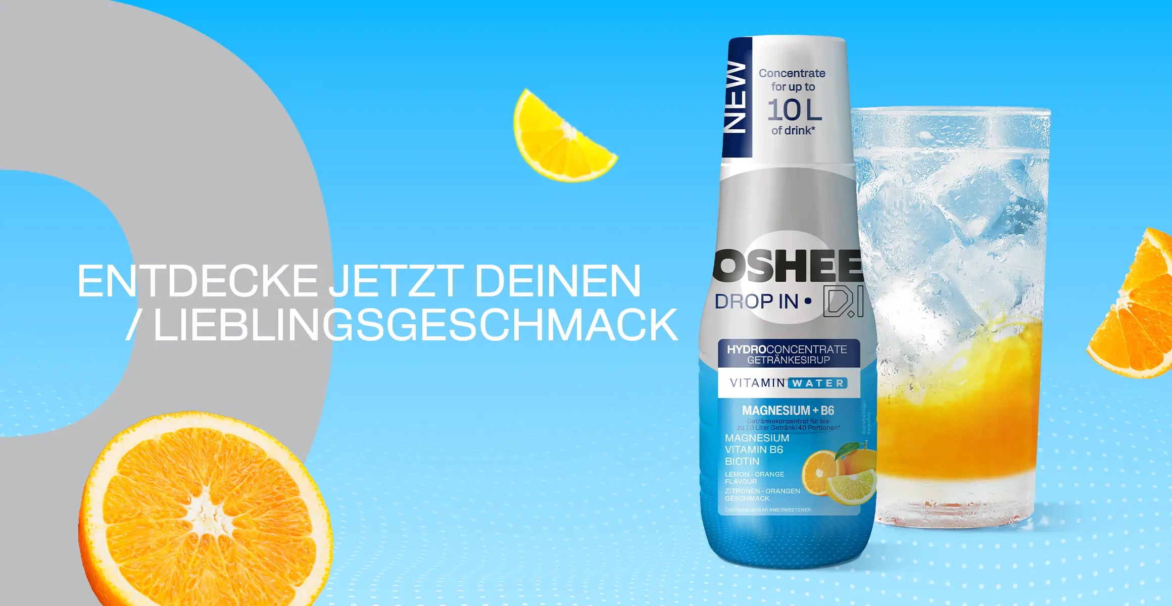 Suchst du ein funktionelles Getränk, mit dem du deinen Körper an heißen Tagen mit Flüssigkeit versorgen, während des Trainings Flüssigkeit auffüllen und wichtige Vitamine für die normale Körperfunktion zuführen kannst? Probiere die Getränkesirupe von OSHEE DROP IN und nutze die Möglichkeit der individuellen Dosierung!